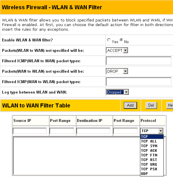 В маршрутизаторе возможно включить отдельные файрволы между WLAN-WAN и WLAN-LAN интерфейсами.