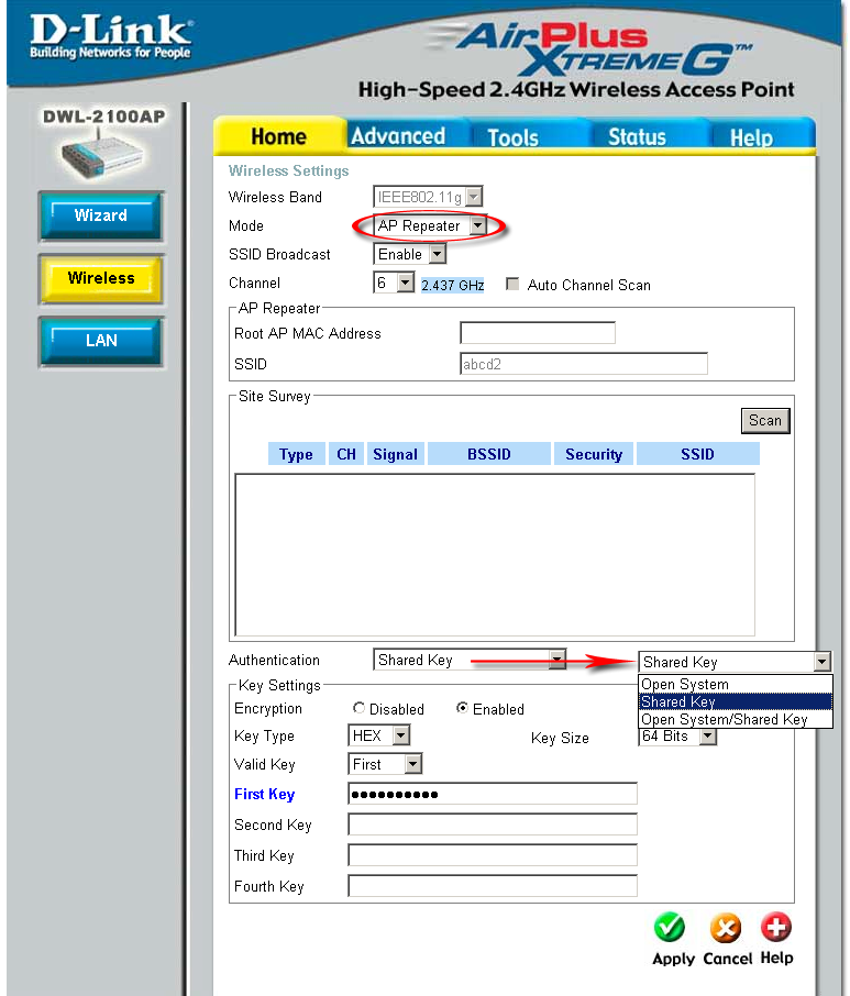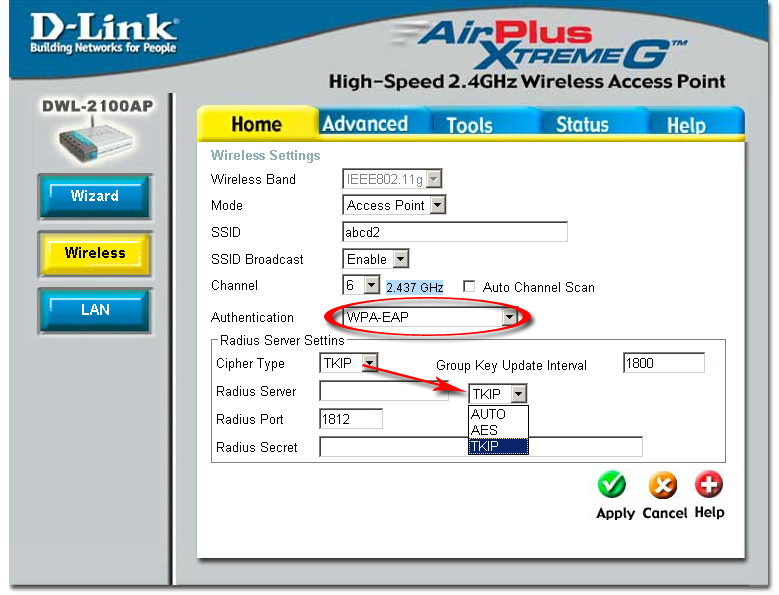 Устройство поддерживает только 152-бит WEP-шифрование, зато обеспечивает большой выбор настроек WPA-шифрования.