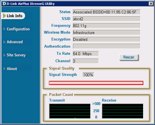 Хочу отметить, что устройство упаковано в пакете с надписью "IMPORTANT Please install the software from bundled CD-ROM before inserting the Adapter". Смысл этой надписи примерно в следующем: сначала установите ПО (драйвер с утилитой) с диска, а только потом устанавливайте адаптер в компьютер. В случае если все сделать наоборот (сначала установить адаптер в компьютер, а потом устанавливать утилиту настройки и драйвер) — утилита настройки не распознает установленного адаптера и откажется с ним работать, то есть конфигурация будет осуществляться исключительно с помощью встроенных средств ОС Windows (Windows Zero Config в случае использования ОС Windows XP), естественно, что никакие дополнительные режимы (наподобие Super G) также работать не будут. Заставить утилиту, установленную после установки адаптера, распознавать адаптер мне удалось только с использованием восстановления системы — переустановка ПО и даже ручная чистка реестра не помогали. Так что мой совет — внимательно читать то, что написано на желтой наклейке пакета, в которой лежит адаптер — самое важное всегда пишется на самом видном месте.