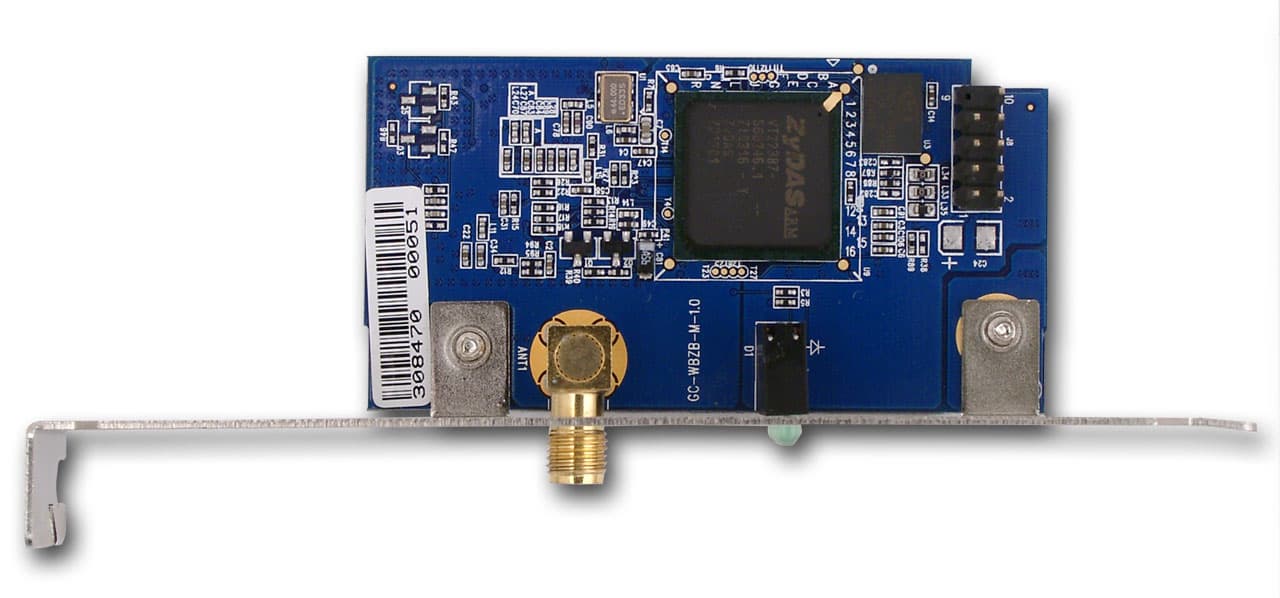 На мой взгляд, адаптер GN-WBZB-M является довольно странным продуктом. С одной стороны, карта рассчитана на интерфейс USB. С другой карта устанавливается внутри компьютера и на ней присутствует только 9ти-пиновый USB-разъем, предназначенный для внутреннего подключения. С картой поставляется кабель, посредством которого ее можно подключить к материнской плате и опять-таки только к внутреннему 9ти-пиновому USB-интерфейсу. Другими словами, подобный продукт нужен лишь в случае, когда в компьютере закончились свободные PCI-слоты, что случается, согласитесь, не часто. Точнее встречается в Barebone-системах но там обычно отсутствуют свободные места под PCI карты, которые расположены не напротив PCI разъемов.