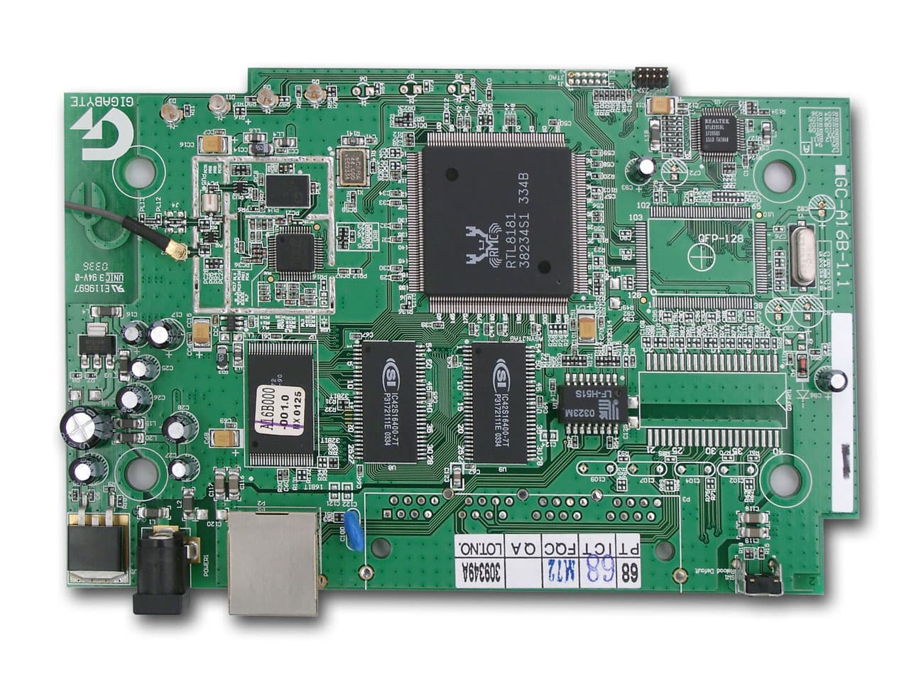 Кроме того, на плате установлены две микросхемы памяти с максимальной частотой работы 143 Мгц и микросхема flash-памяти неизвестного объема. Также на плате можно наблюдать микросхема RTL8201, которая является однопортовым «Fast Ethernet Phyceiver».