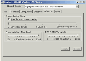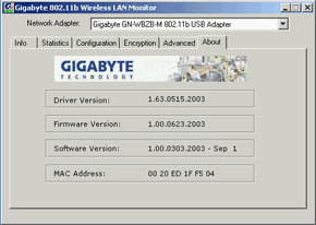 В разделе Advanced можно настроить дополнительные параметры адаптера, в том числе режим меньшего энергопотребления. Правда, не совсем ясно, зачем нужно регулировать энергопотребление, так как адаптер явно не будет использоваться с ноутбуками, а эта функция пользуется популярностью именно в них. Ну а последняя закладка About сообщает версию драйвера, прошивки устройства и его МАС адрес.