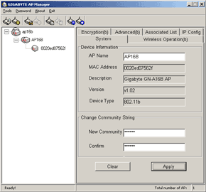 Устройство можно конфигурировать как через поставляемую на диске утилиту Gigabyte AP Manager, так и через WEB-интерфейс.