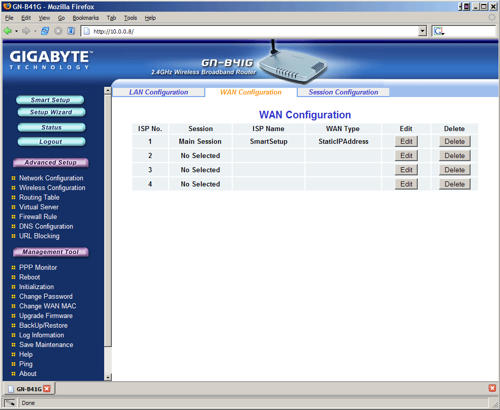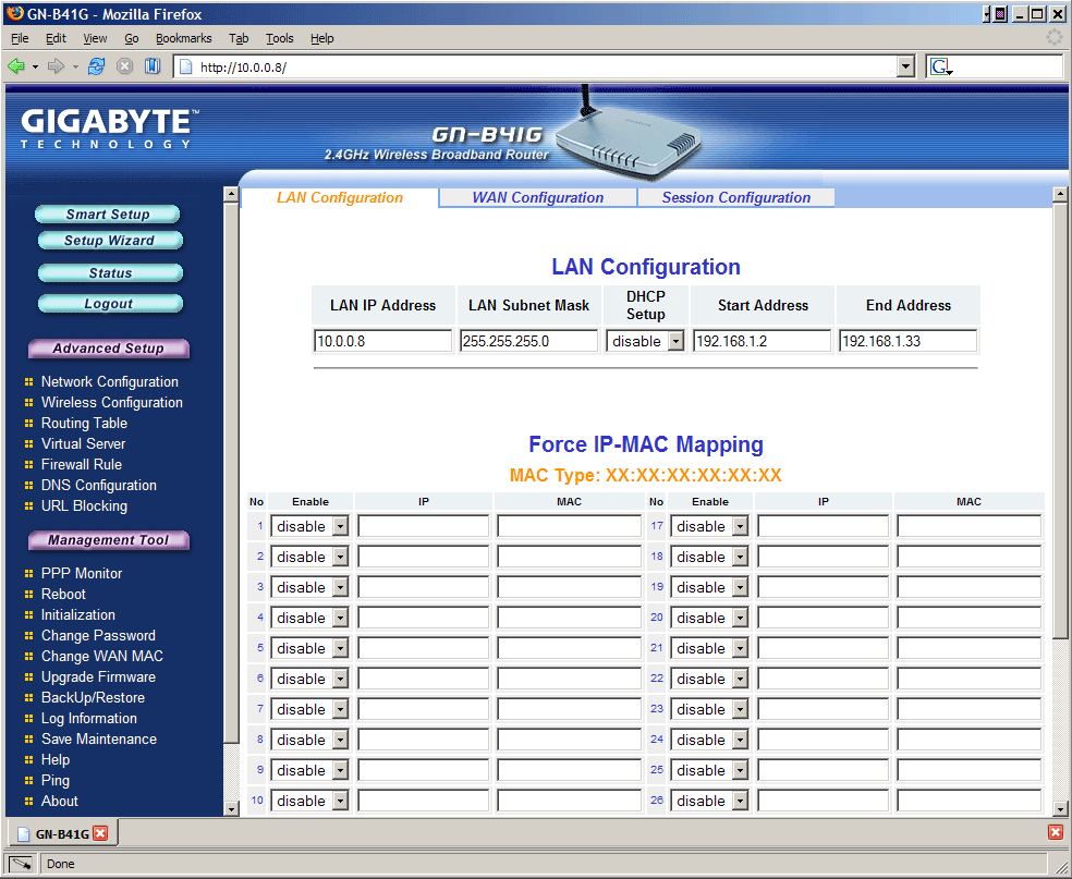 Устройство Gigabyte GN-B41G совмещает в себе точку доступ и NAT-машрутизатор. В общем-то, достаточно стандартное на сегодняшнее время устройство, но компания заявляет, что маршрутизатор наделен интеллектуальной функцией по самонастройке, именуемой SmartSetup, что должно выгодно отличать GN-B41G от конкурентов. О работе SmartSetup III будет рассказано немного позже, в разделе, посвященном конфигурированию устройства.