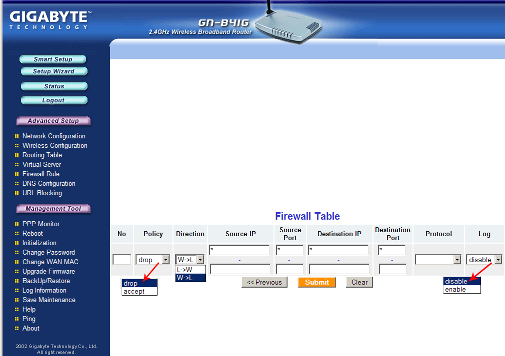 Особо стоит отметить довольно гибкие возможности по заданию правил файрвола, наличие возможности задать несколько профилей для WAN-порта (например, основной и резервный, с возможностью переключения на резервный при падении основного… хотя наличие всего одного WAN-порта делает такую возможность малофункциональной).