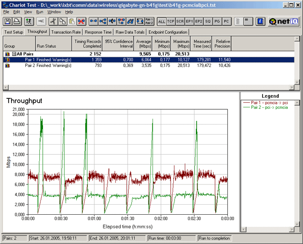 Часть производительности беспроводной части, касающейся работы с одной картой в режиме Infrastructure, была исследована в статье по беспроводному адаптеру GN-WPKG.