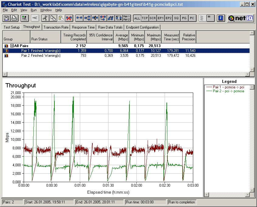 В этой же статье было проведено тестирование Cardbus беспроводного адаптера GN-WMKG все с тем же GN-WPKG в режиме Adhoc.