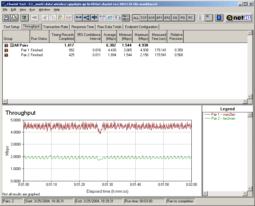 Скорости передачи данных между проводным и беспроводным сегментами в режиме 802.11g. NetIQ Chariot, Throughput.scr