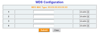 Раздел WDS Configuration позволяет настроить работу роутера в качестве беспроводного моста (при этом возможна одновременная работа роутера в режиме точки доступа и WDS).