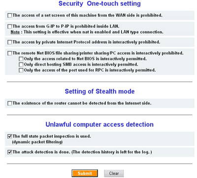 Сканирование осуществлялось в два этапа. В первом, настройки в разделе Firewall Rule –> Security Configuration оставлялись по умолчанию. То есть никакие пункты не были выбраны (минимальный уровень безопасности все разрешено). Кстати, подобные настройки-умолчания применительно к роутеру не являются правильными и потенциально могут позволить злоумышленнику воспользоваться возможными дырами в устройстве.