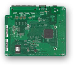 На обратной стороне печатной платы расположены только микросхема флэш-памяти и PCI-to-PC card контроллер. Последний отвечает за сопряжение внешних PCMCIA карт с основной платой роутера. Вся остальная электроника находится на лицевой стороне.