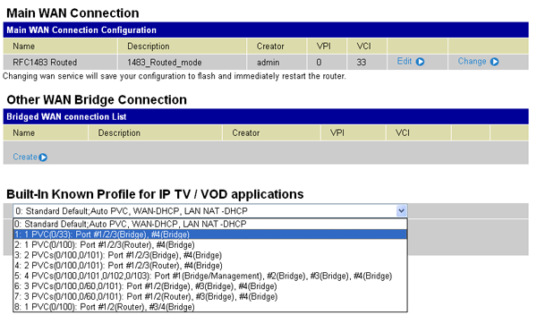ADSL-маршрутизатор позволяет устанавливать до восьми ATM-соединений (с различными значениями пар параметров VPI/VCI) — это позволяет использовать такие возможности, как IPTV (по примеру СтримТВ) — то есть у нас могут работать три порта на предоставление доступа к Интернет, а один порт — на подключение приставки для ТВ. Возможно предоставление и других сервисов.