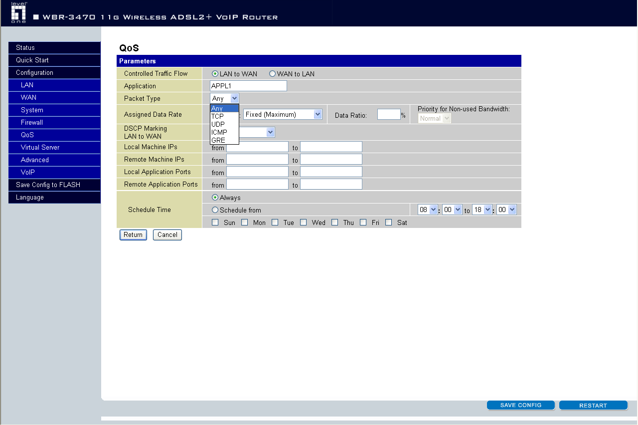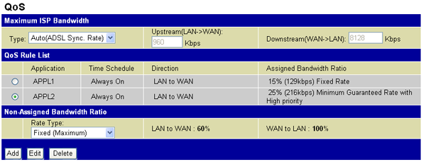 Шейпинг трафика работает достаточно четко… но только в случае, если он вообще работает. Мне так и не удалось заставить работать шейпинг трафика по приоритетам на входящем трафике — данная возможность показала себя только на исходящем (LAN -> WAN) трафике.