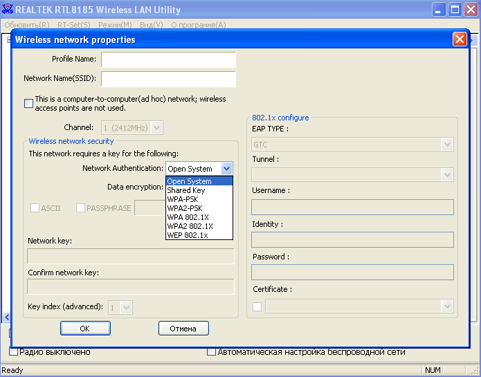 Конфигурацию беспроводного адаптера можно осуществлять с помощью утилиты Windows Zero Config, встроенную в ОС Windows XP или с помощью собственной утилиты настройки, которую мы рассмотрим в данном разделе.