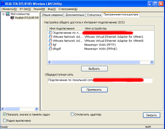 - Не удалось добиться работы беспроводного адаптера в режиме "программной точки доступа"