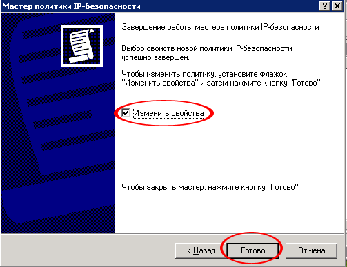 Ставим галочку "изменить свойства", чтобы начать редактировать политику сразу по завершении мастера и жмем "Готово":