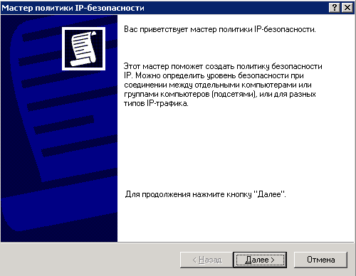 Запускается мастер добавления новой политики IP, жмем "далее":