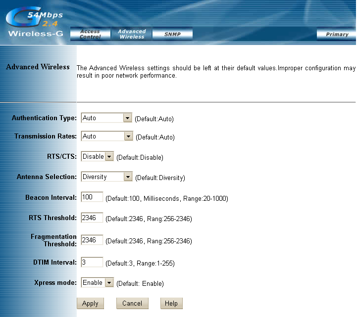 Есть возможность сохранения настроек. Хранение логов осуществляется только на внешнем лог-сервере. Режимы беспроводной связи: 11b+g; 11b only; 11g only; AfterBurner. Присутствует поддержка SNMP, но через нее можно получить только информацию об устройстве и его владельце, которую вы сами задаете.