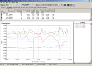 Тест LAN-WLAN 1 карта — трафик гонялся между компьютером с беспроводной сетевой картой и компьютером локального (LAN) сегмента. Скорость соединения устанавливалась в Auto mode. Тест проводился для трех режимов: 802.11b ; 802.11g ; AfterBurner Mode. Для тестирования использовалась беспроводная сетевая карта TRENDnet TEW-401PCplus PCMCIA Card. Тест производился с помощью Chariot NetIQ. Расстояние между точками не превышало пяти метров.