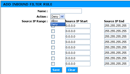 Что касается правил фильтрации входящего трафика, то можно запретить или разрешить трафик только по IP-адресу источника. Фильтрацию по порту назначения (для TCP и UDP) производить нельзя.