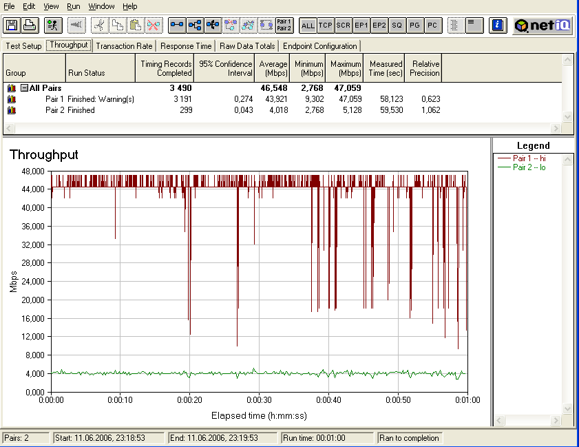 Тест "Беспроводной PCI-адаптер TRENDnet TEW-603PI и беспроводной Cardbus-адаптер TEW-601PC — точка доступа TRENDnet TEW-611BRP" — трафик гонялся между беспроводными адаптерами (TRENDnet TEW-601PC Cardbus и TEW-603PI PCI) и компьютером, находящимся в LAN-сегменте точки доступа на роутере TRENDnet TEW-611BRP. Тестирование проводилось в режимах IEEE 802.11b, IEEE 802.11g, Super G и Super G with Turbo. Расстояние между точками беспроводной связи при тестировании не превышало 5-ти метров.