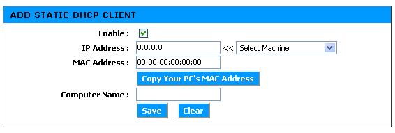 Устройство позволяет задать до 64 статических записи DHCP. Всего по DHCP может быть ассоциировано до 252-х IP-адресов.