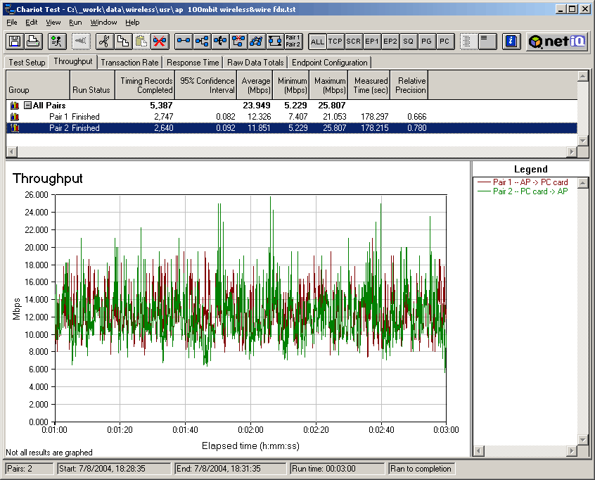 NetIQ Chariot: скорости передачи данных между AP и PC card в режиме 802.11g, 100Mbit rate, Throughput.scr