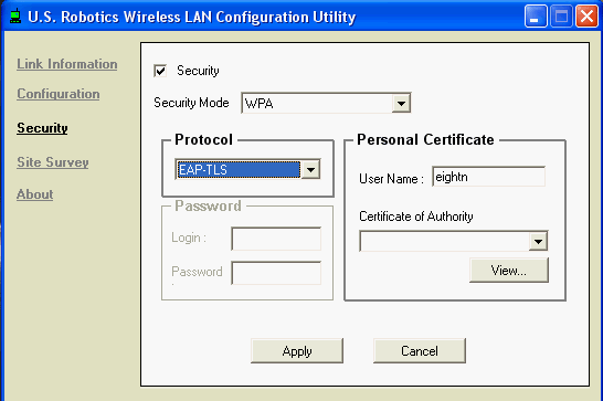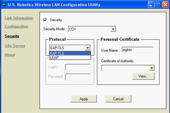 Закладка Security позволяет настраивать различные типы шифрования и аутентификации.