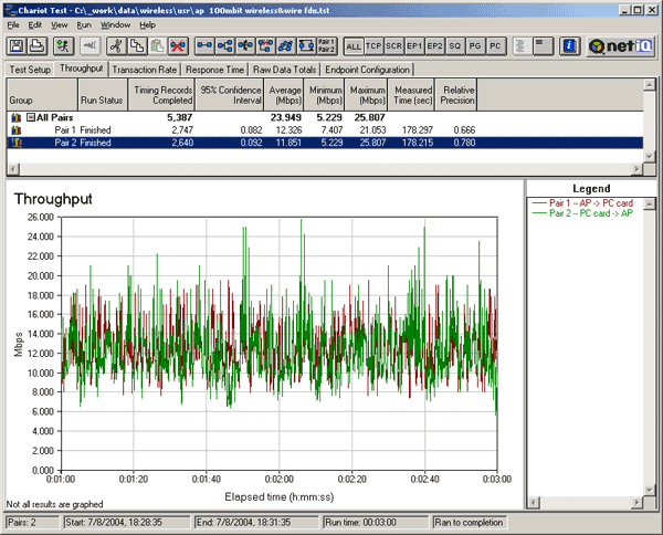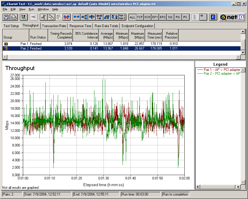 NetIQ Chariot: скорости передачи данных между AP и PCI adapter в режиме 802.11g, 100Mbit rate, Throughput.scr