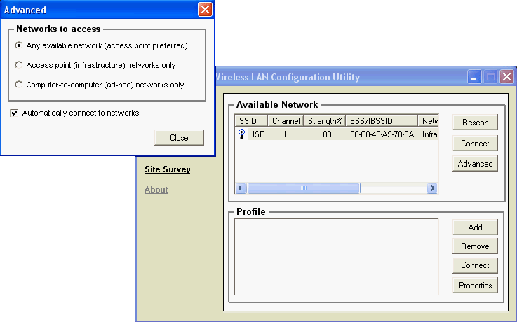 А в Site Survey настраиваются профайлы и шаблоны под различные беспроводные сети.
