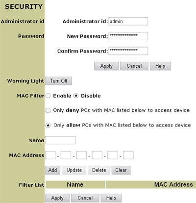 | привязка к MAC адресам | да, два режима – разрешить/запретить доступ по списку | |||