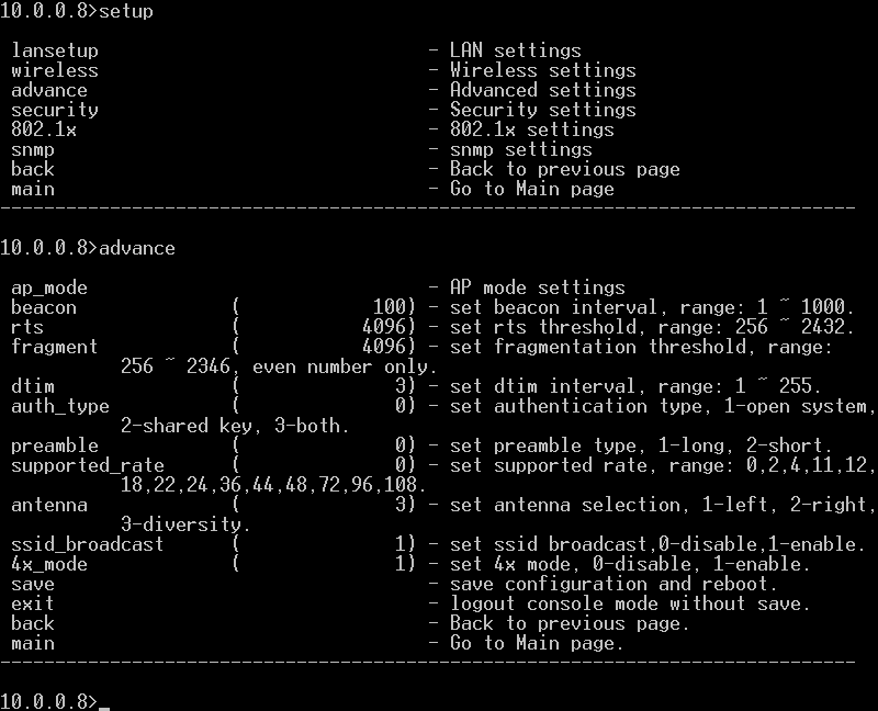 - конфигурирование посредством консоли через COM-порт или telnet;