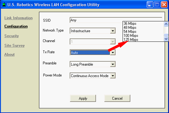 Скорость устанавливаем в Auto mode. В данном случае получаем 54Мбит-а. Как и говорилось ранее, режимы 1xx Мбит работают лишь в режиме Infrastructure.