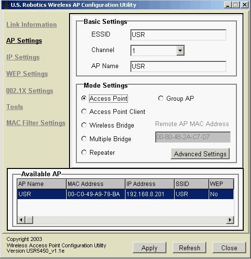 - 802.11g Wireless Turbo Multi-Function Access Point (Model USR5450)