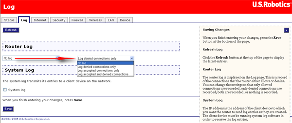 Здесь задается Syslog-сервер, на который будут посылаться логи устройства и параметры логирования