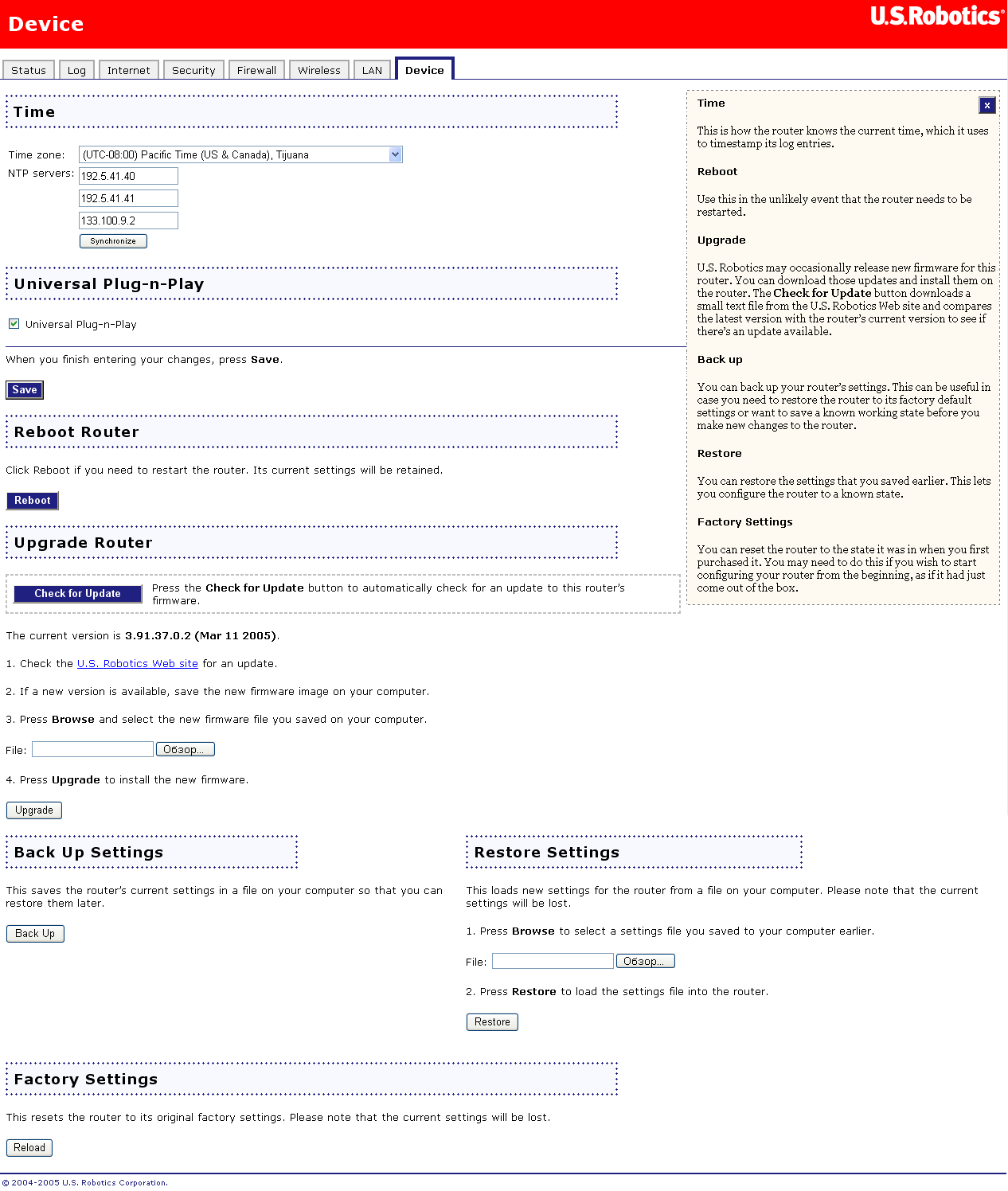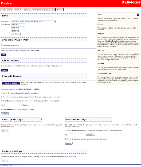 Здесь возможно сохранение-восстановление конфигурации, обновление прошивки