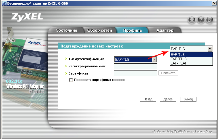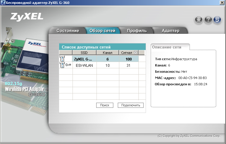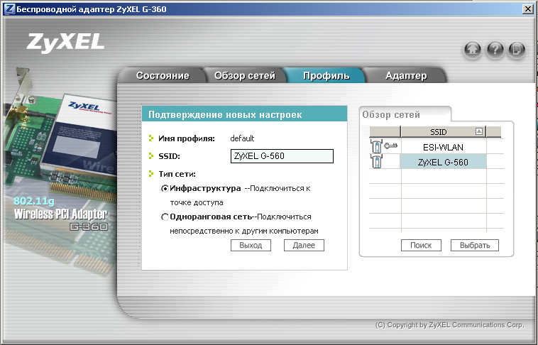 - PCI — беспроводной адаптер ZyXEL G-360