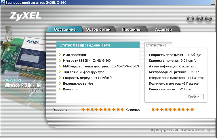 В этой статье рассматривается Беспроводное оборудование ZyXEL с поддержкой режима ускоренной передачи данных (режимы b+ и g+): точка доступа G-560, Cardbus адаптер G-162 и PCI-адаптер G-360.