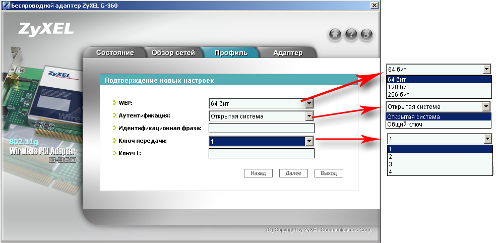 - PCI — беспроводной адаптер на PCI-шине ZyXEL G-360