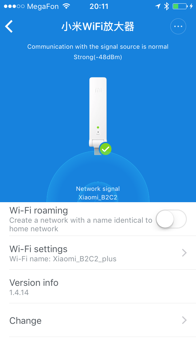 Производитель заявляет о простом варианте настройки данной модели — достаточно только установить ее в USB-порт работающего роутера Xiaomi — и через пару минут можно отключить повторитель и установить его в нужном месте квартиры или дома. Также для запуска устройства в работу вы можете использовать мобильную программу для управления домашней автоматизацией Mi Home. В этом случае можно будет реализовать подключение к любому роутеру, а не только производства Xiaomi. Эта же программа применяется для обновления прошивки повторителя. В нашем случае тестирование проводилось с версией 1.4.14.