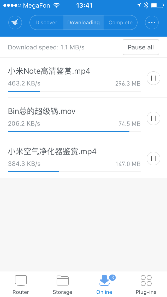 Третья страница мобильной утилиты используется для контроля сервиса загрузки файлов. Однако для практического применения в сетях p2p (в частности с протоколом BitTorrent) он не пригодится, поскольку ориентирован на работу с китайскими сервисами.