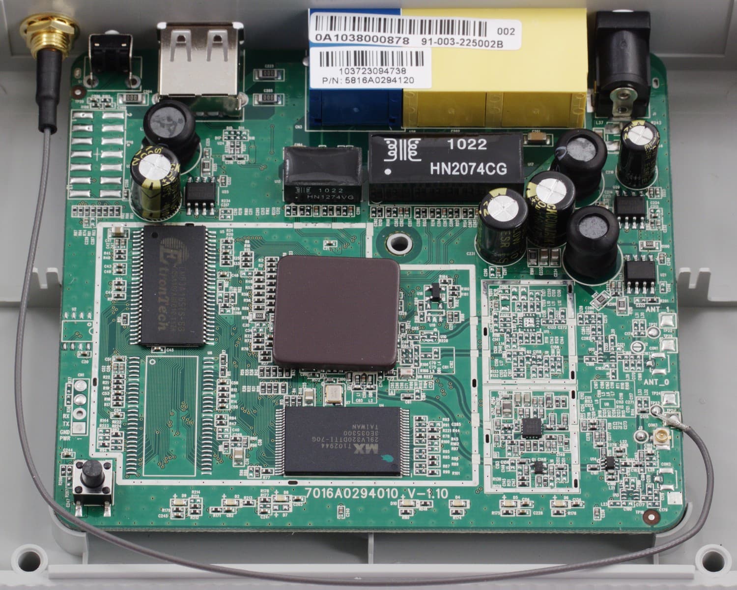 Основные компоненты устройства: процессор Ralink RT3050, 32 МБ оперативной памяти и 4 МБ флеша. Радиомодуль стандарта 802.11n соответствует схеме 1T1R (до 150 Мбит/с) и встроен в основной процессор, так же как и контроллер USB и Ethernet-коммутатор.