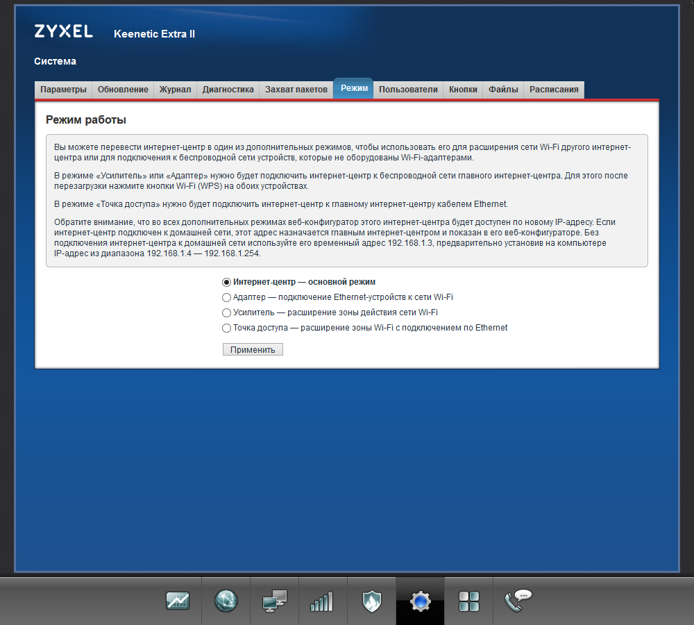Также напомним, что устройства способны работать не только в режиме роутера, но и как точка доступа, адаптер или усилитель. Для Keenetic Extra II переключение осуществляется через веб-интерфейс, а на Keenetic Air есть аппаратный переключатель и независимые конфигурации для каждого режима.