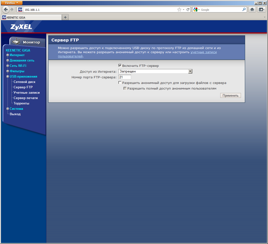 При использовании стандартного сетевого доступа, устройство обеспечивает скорости чтения и записи на уровне 6 МБ/с, за исключением HFS+ — с этой файловой системой чтение происходит в два раза быстрее. Использование протокола FTP немного меняет расстановку сил, но в среднем скорость остается на том же уровне. Отметим, что в любом случае даже младшие модели сетевых накопителей будут гораздо быстрее. Но и аппаратная конфигурация у них сильнее, да и цена заметно выше. Так что, на наш взгляд, работа Keenetic Giga в данном режиме выглядит в целом неплохо. Для обмена документами через FTP или хранения резервных копий не очень большого размера он вполне подойдет.