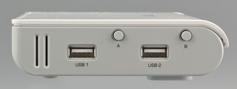 На левой боковой стороне теперь находятся два порта USB. Хорошо, что расстояние между ними сделали достаточно большим — можно пользоваться «толстыми» флэшками и 3G-модемами без удлинителей. Специальная кнопка пригодится для быстрого безопасного отключения накопителей, не требуя доступа в web-интерфейс роутера. С противоположной стороны находится только решетка вентиляции. Также есть она и на переднем торце устройства.