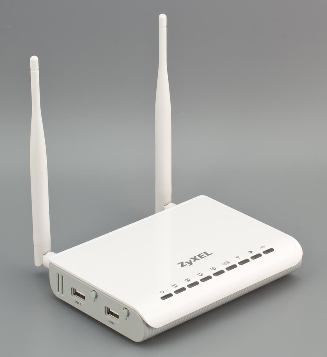 Упаковка и комплектация устройств ZyXEL соответствует нашим ожиданиям. В полностью локализованной коробке, оформленной иллюстрациями сценариев подключения и подробными техническими характеристиками, пользователь найдет роутер, импульсный блок питания 12 В 1,5 А, две антенны с коэффициентом усиления 5 дБи, сетевой патч-корд, компакт-диск с программами и руководствами, гарантийный талон, полноценную инструкцию для пользователя на русском языке.