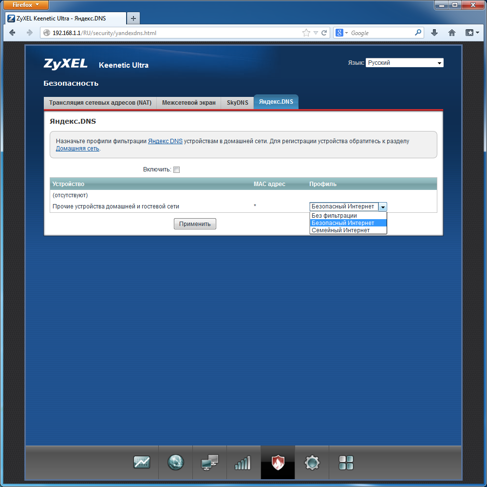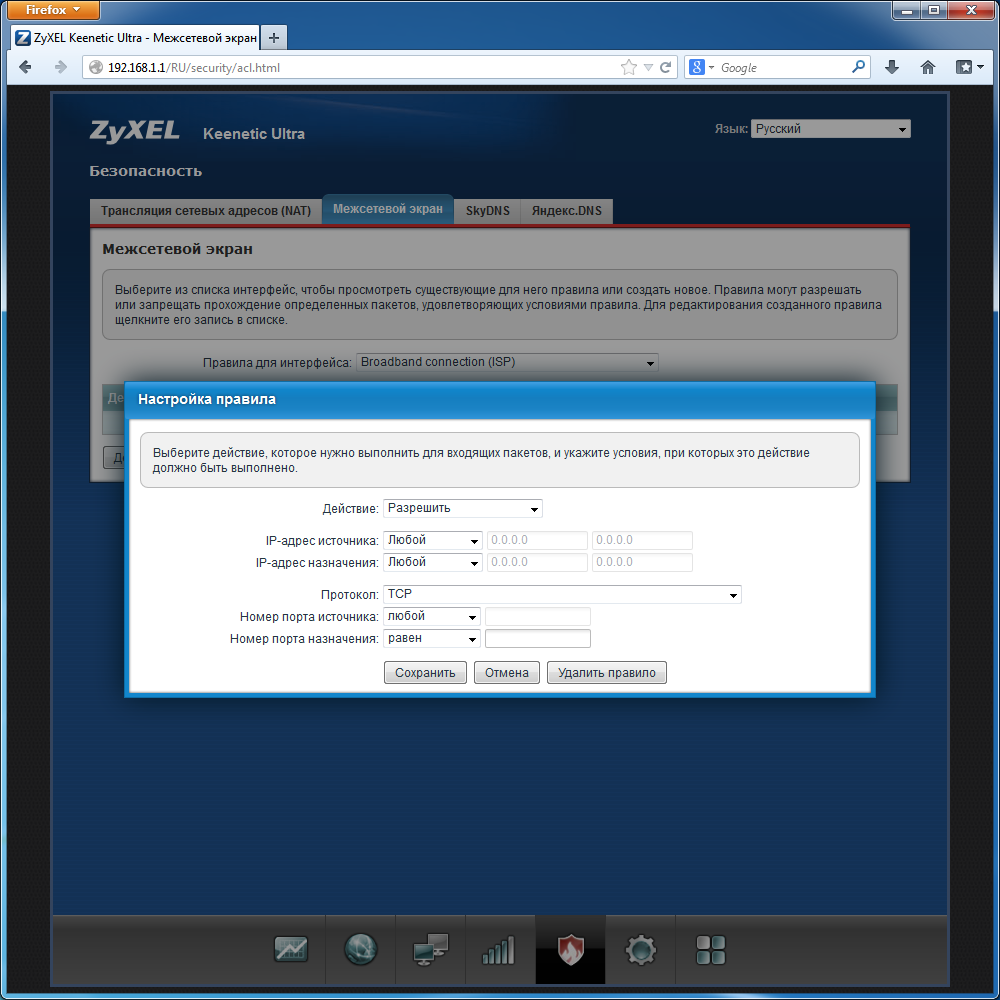 Есть встроенная поддержка протокола UPnP, отключить который можно удалением модуля. Как и для брандмауэра, есть возможность указания в правилах интерфейса. Очень полезной возможностью является поддержка сервисов SkyDNS и Яндекс.DNS. Благодаря технологиям фильтрации DNS-запросов, они могут повысить защиту ваших компьютеров и мобильных устройств от сомнительного и вредного контента. В случае Яндекс.DNS пользователь имеет возможность определить для каждого клиента свой уровень фильтрации. Аналогичная возможность есть и на платных аккаунтах SkyDNS.