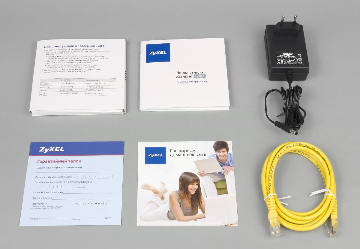 В комплекте поставки роутера идет внешний импульсный блок питания (12 В 2 А), сетевой патч-корд, инструкция пользователя на русском языке, гарантийный талон.