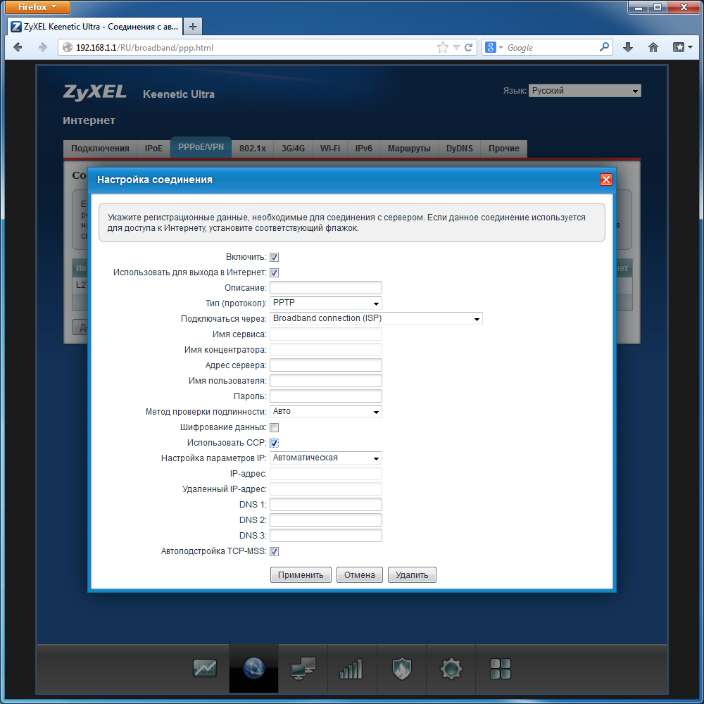 Группа «Интернет» собрала все параметры подключения к глобальной сети. Новая прошивка позволяет запрограммировать одновременно несколько соединений разных типов и установить для них приоритеты.
