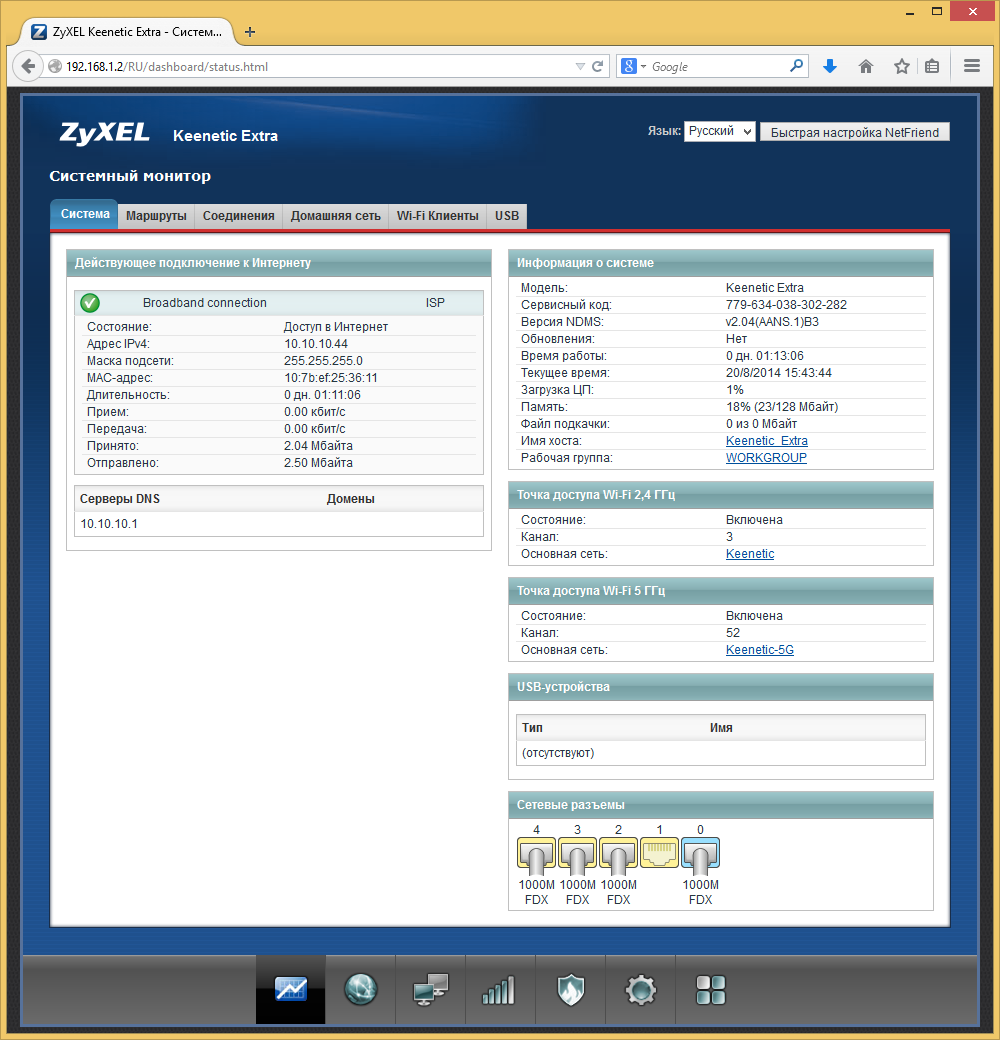 Как мы говорили выше, рассматриваемые роутеры используют прошивки серии NDMS 2, что позволяет говорить о реализации не только базового набора возможностей роутеров, но и множестве дополнительных возможностей.